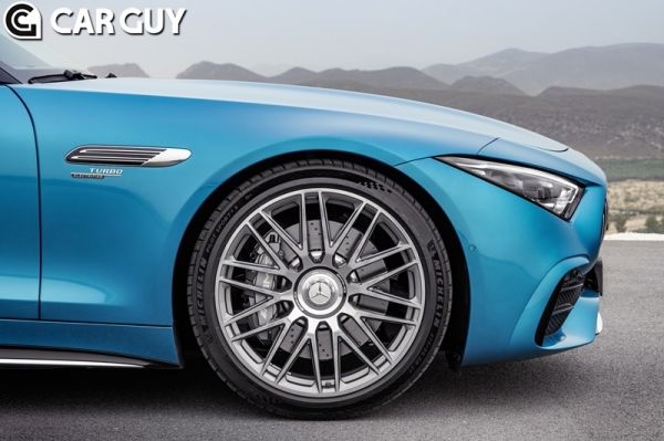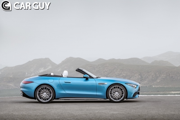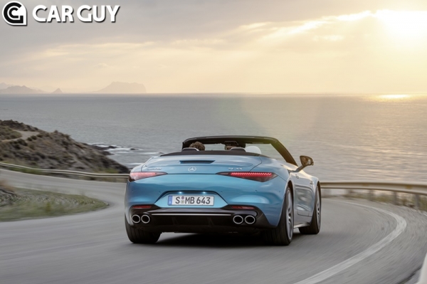메르세데스-AMG의 새로운 4기통 카브리올레 이름은 SL 43이다. AMG 모델이라 이름도 그들의 작명법을 따랐다. 이전까지는 벤츠와 AMG, 투 트랙으로 나뉘었다. 7세대부터는 AMG 모델로만 출시한다. 외관은 작년에 출시한 상위 모델과 큰 차이 없다. 긴 휠베이스와 짧은 오버행, 긴 보닛 등 SL 특유의 비율을 보인다. AMG 상위 모델 특징인 각진 배기구 대신 원형 배기구가 장착되고 뒤 범퍼 형상이 좀 더 매끄럽게 다듬은 점이 다르다. 휠은 19인치 휠이 기본이다. 옵션으로 8기통 모델과 같은 디자인의 20인치와 21인치 휠을 선택할 수 있다.