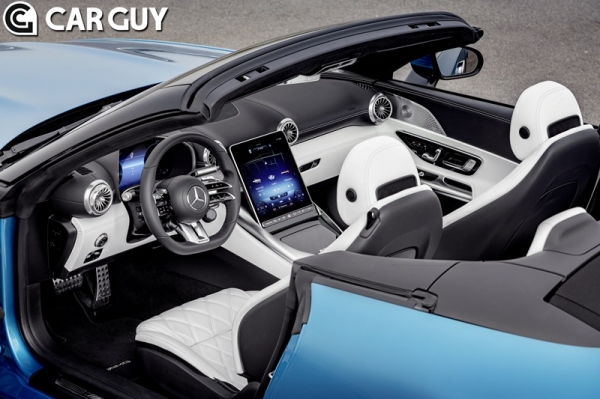 오랜만에 적용된 소프트 톱은 다양한 장점이 있다. 이전 모델의 하드 톱과 비교해 구조적으로 단순해지면서 무게를 21kg 줄였다. 또 접었을 때 지붕이 차지하는 공간도 줄였다. 신형 SL이 2+2 시트로 나올 수 있었던 이유기도 하다. 소프트 톱을 여닫을 때 15초가 걸리며 시속 60km까지 작동한다. 센터 콘솔의 버튼 혹은 센터 디스플레이를 통해 조작할 수 있다. 개폐가 진행되는 동안 디스플레이에 애니메이션으로 현재 진행 상황을 보여준다.