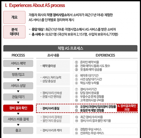 지난 1년 동안 자동차 AS 이용자의 7%가 정비가 필요 없는 엉뚱한 수리를 받았다는 조사결과가 나왔다. 자동차 리서치 전문기업 컨슈머인사이트는 최근 보고서를 내고 "자동차 정비/수리를 받으며 오류를 경험한 경우가 7%였고 그 중 국산차가 수입차의 1.4배에 달했다"고 발표했다.