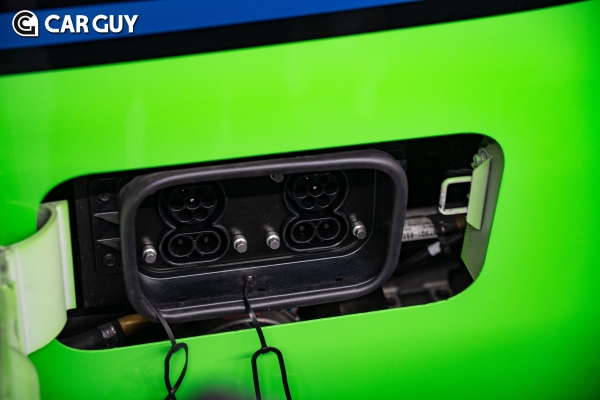 충전은 DC콤보 2개를 사용한다. 0%에서 80%까지 약 33분, 100%까지는 약 55분이 걸린다. 완충시 환경부 기준 약 350km를 갈 수 있다. 일반적인 마을버스가 200km 운행하는 것을 보면 넉넉한 주행거리다.