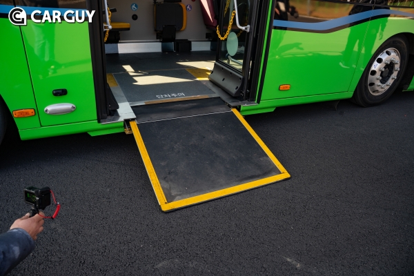 또한 에어 서스펜션이 적용되어 있어 한쪽 서스펜션의 차고를 내려 차체를 옆으로 기울이는 ‘닐링’이 가능하다. 덕분에 중문에 있는 휠체어 리프트를 펼쳤을 때 더 쉽게 탑승할 수 있다. 또한 차고를 위로 올릴 수도 있어 심한 방지턱이나 언덕길에서도 부담 없이 운행 할 수 있을 것으로 보인다. 휠체어는 2대까지 탑승이 가능하다. 장애인용 하차벨이 별도 적용되어 있어 보다 수월한 하차가 가능하다.