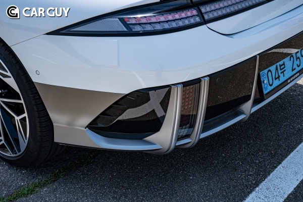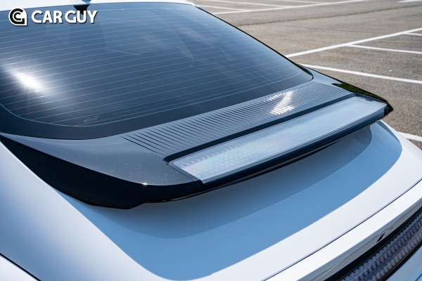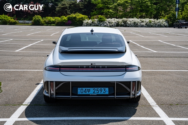 아이오닉6 외관은 오로지 공기저항계수 0.21cd를 확보하기 위해 인위적으로 만들어진 디자인이라고 봐도 과언이 아니다. 하나의 활처럼 휜 원-보우 루프라인과 그릴이 없는 전면부, 눈에 확 들어오는 스포일러가 달리 후면부까지 하나부터 열까지 모두 공기저항계수를 낮추기 위한 노력의 산물이다.