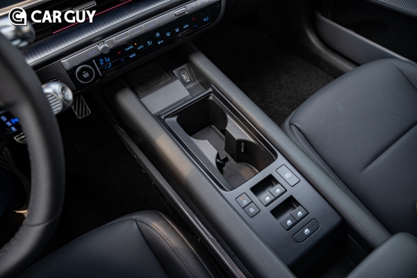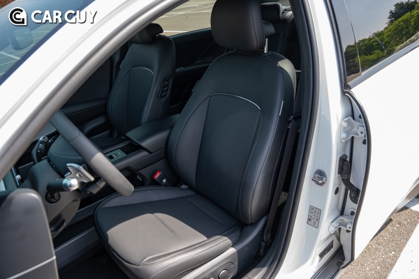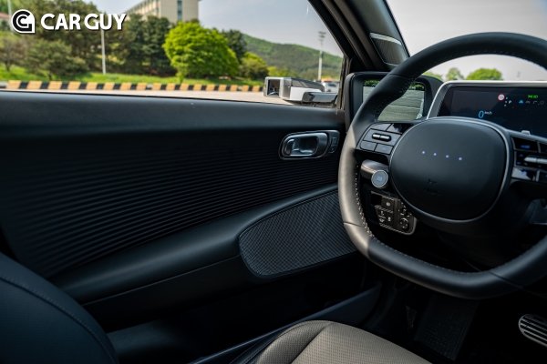 실내는 아이오닉5를 위 아래로 누른 듯한 느낌이다. 도어트림의 윈도우 스위치를 중앙으로 옮겨 좌우 무릎 공간이 넓어진 것은 상당히 좋았다.