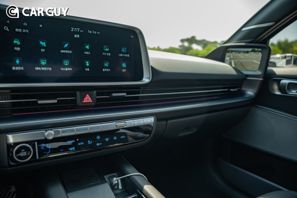 풀옵션 시승차는 도로에서 보기 힘든 디지털 사이드 미러가 달려 있다. 아이오닉5의 디지털 사이드 미러 화면보다 깔끔하고 위치도 적당해 실제 사용할 때 적응이 쉬웠다. 다만, 운전석측 디스플레이와 조수석 디스플레이의 각도가 달라 원근감 왜곡이 생길 수도 있겠다.