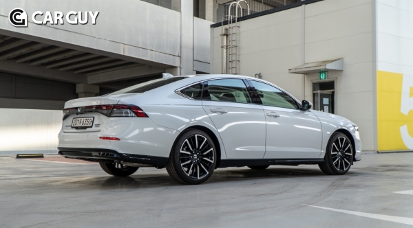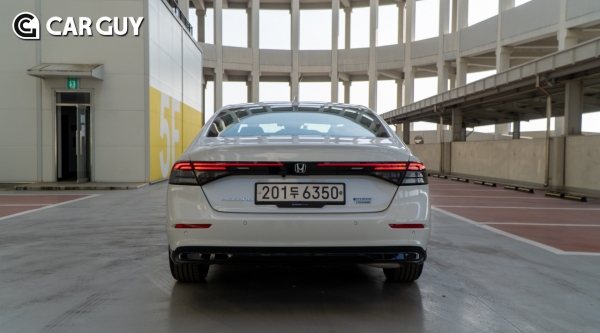 수평형 디자인의 풀 LED 테일라이트가 길게 자리했다. 리어 루프부터 트렁크 리드까지 완만하게 떨어지는 패스트백 스타일을 완성했다. 과거 6세대 북미형 어코드와 유사한 인상이다.