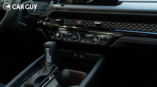 인포테인먼트 시스템 조작부를 음량 다이얼만 남겨놓고 모두 터치 디스플레이 속으로 집어 넣었다. 좌측으로 3cm 가량 할당된 퀵메뉴를 사용자화 할수 있어 편리하다. 무선 애플 카플레이와 안드로이드 오토도 가능하다. USB-C 타입 포트 두 개가 자리하며 무선충전 패드도 장착했다.
