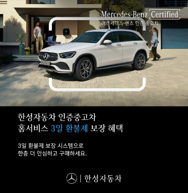 한성자동차는 메르세데스-벤츠의 엄격한 198가지 인증 절차를 통과한 인증중고차만을 제공하는 품질에 대한 자신감을 바탕으로, 이번 ‘홈서비스 3일 환불제’ 도입을 통해 고객의 온라인 구매 편의성과 신뢰성를 더욱 강화한다는 목표다.