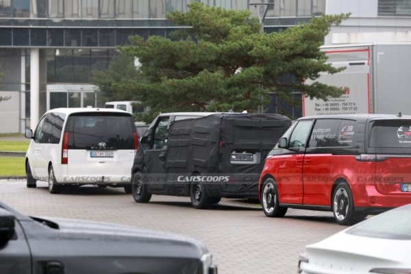 또한, 측면 및 후면에서 별도의 충전구를 확인할 수 없다. PV5의 충전구는 전면에 위치할 것으로 예상된다. 스파이샷에 포착된 PV5 앞뒤로 현대 스타리아와 폭스바겐 ID.버즈가 세워져 있어 그 크기를 가늠할 수 있다.