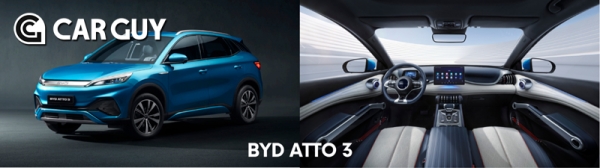 BYD ATTO 3는 B-세그먼트 순수 전기 SUV로, 2022년에 첫 출시한 이래 현재까지 100만대 이상 누적 판매량을 기록한 BYD의 베스트셀링 모델이다. 헤드램프에서 테일램프까지 차체를 가로지르는 인상적인 캐릭터라인과 18인치 알로이휠은 스포티하고 공기역학적 외관 디자인을 구현했다. e-플랫폼 3.0과 블레이드 배터리를 적용하였으며 유럽 신차 안전도 평가인 Euro NCAP에서 최고 등급인 별 다섯 개를 받는 등 안전성을 인정받았다.
