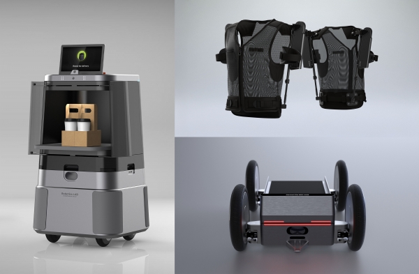 로보틱스랩의 엑스블 숄더는 산업용 착용 로봇으로 윗보기 작업에서 착용자의 어깨 근력을 보조해준다. 달이 딜리버리는 사무실이나 쇼핑몰 등 복잡한 공간에서 배송서비스를 제공하는 로봇으로 금속 느낌을 부각하고, 센서 노출을 최소화해 디자인 완성도를 높였다.