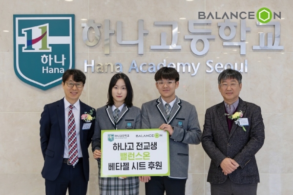 밸런스온은 지난 2024년 하나고등학교 전교생에게 밸런스온 시트를 후원한 데 이어 올해까지 2년 연속 후원을 이어가고 있다. 지난 3일 서울 은평구 소재 하나고등학교 입학식 현장에서 진행된 후원식에는 하나고등학교 입학생들과 교직원, 불스원 관계자 등이 참석했으며, 이번 후원식을 통해 하나고등학교 신입생에게 밸런스온 시트를 전달했다.