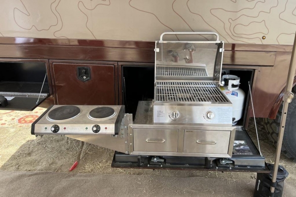 외부에는 전동식 어닝과 야외 주방, 후면 및 측면 카메라 첨단 보안 시스템 등이 있다.