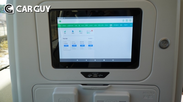 개인 전용 업무 공간답게 220V 콘센트부터 무선충전패드, A,C타입 USB포트, 업무용 사이드 테이블 및 서류 수납함, 독서등을 장착했다. 여기에 개인 모니터로 작동하는 엔터테인먼트 시스템을 좌석 앞에 달았다.