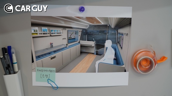 이에 대해 현대차 모바일오피스 관계자는 "이동수단을 넘어 새로운 미래형 오피스 공간을 창출하기위해 모바일 오피스를 개발했다"며 "시트는 개별 안전 인증을 받아야 해 앞으로 업무 자세도 편안한 모바일 오피스 전용 시트를 개발할 것”이라고 말했다.