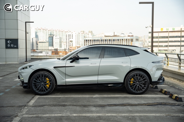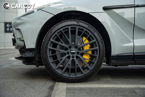 압도적인 덩치에 23인치 휠이 그다지 커 보이지 않는다. 기존보다 40kg이나 가벼운 6피스톤 카본 세라믹 브레이크는 DBX707의 특징이다. 심미적으로도, 성능으로도 만족스럽다.