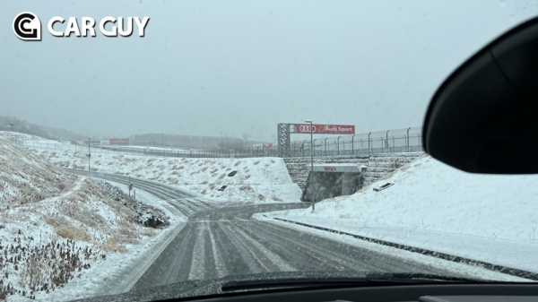 이번에는 눈으로 덮힌 후지스피드웨이를 스노타이로 갈아 끼운뒤 전문 드라이버와 함께 택시 주행에 나섰다. "707마력이 눈에서 슬립하면.." 하는 걱정도 들지만 슈퍼카 SUV의 실력을 제대로 느껴볼 몇 안되는 기회다. 후지 서킷에 진입한 DBX는 가속 페달을 밟자 굉음을 쏟아내며 눈길을 헤치고 나아간다.