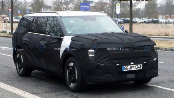 오는 4월 출시가 예정된 기아의 전기 대형 SUV EV9에 대한 기대가 뜨겁다. 최근 해외에서 광고 촬영 중 실차가 위장막 없이 촬영되는 초유의 유출 사건 이후 더 많은 관심이 쏠리고있다. 흐릿한 사진이지만 전체적인 헤드램프의 형상이나 범퍼 형체가 드러났다.