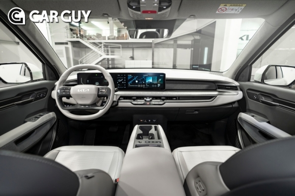 EV9은 세 개의 디스플레이가 매끄럽게 연결된 파노라믹 와이드 디스플레이를 통해 탑승객에게 필요한 정보를 효율적으로 전달하고 차량 조작 버튼을 최적 배치해 공간 활용도를 더욱 높였다.