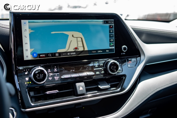 실내도 전형적인 토요타다운 인테리어다. 중앙에 위치한 인포테인먼트 디스플레이와 계기판은 크라운 크로스오버에서 본 것과 흡사해 그나마 최신 트렌드로 보인다. 아틀란 네비게이션을 탑재했고 애플 카플레이와 안드로이드 오토를 무선으로도 지원한다.