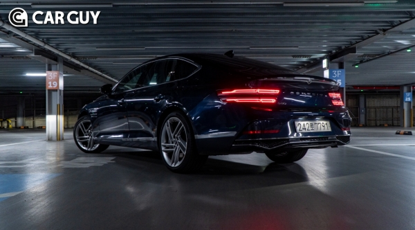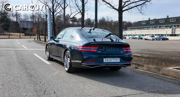 후면은 크게 달라지지 않았다. 테일램프 그래픽도 동일하다. 다만 범퍼 하단과 후면 머플러 디자인을 변경했다. GV80과 동일하게 파워트레인 불문하고 전부 히든타입 머플러로 바꿔 머플러 팁을 몰딩 형태로 남겨뒀다. 스포츠 패키지에는 머플러 팁을 유지하면서 라인업 간의 성격을 확실히 구분지었다.