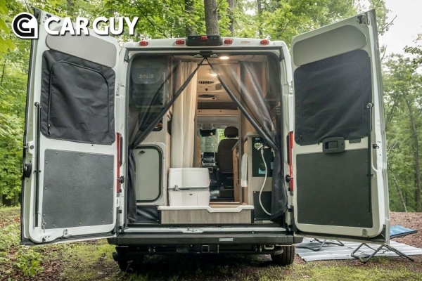 캠핑카 뒷부분에는 이동식 화장실, 조리대가 있는 빌트인 싱크대를 마련했다. 화장실은 샤워실이나 젖은 장비를 보관할 수 있는 머드 룸으로 사용할 수도 있다. 주방에는 듀얼 버너 레인지 탑과 스테인리스 스틸 싱크대, 냉장고를 설치했다. 담수탱크 75L, 중수탱크 75L, 온수기 9L를 탑재하고 있다.