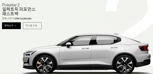 폴스타코리아는 최근 자사 홈페이를 통해 폴스타2 롱레인지 싱글 모터는 기존 5590만원에서 5490만원으로 100만원으로 낮췄다. 설 전에 공표된 올해 전기차 보조금 개편 기준에 맞춘 셈이다.