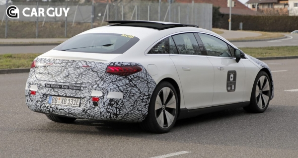 측면, 후면 디자인은 크게 달라지지 않는 것으로 확인된다. 신규 휠 디자인이 적용되고 EQS의 특징인 원-보우 스타일 유선형 바디라인은 그대로 유지된다. 리어램프도 내부 그래픽 정도를 소소하게 다듬는 수준의 변화가 있을 것으로 보인다.