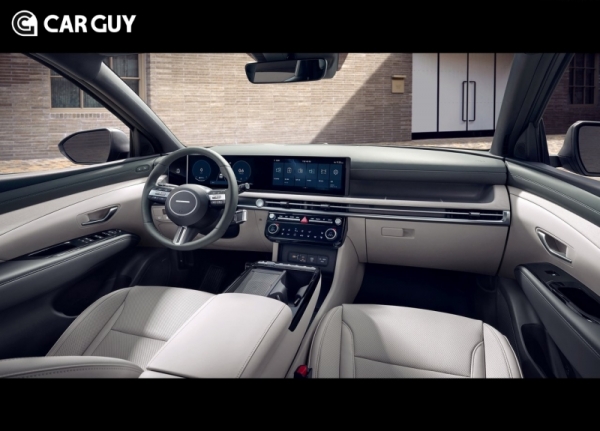 신형 싼타크루즈 실내에는 각각 12.3인치 디지털 클러스터와 인포테인먼트 시스템을 곡선 형태로 연결한 파노라믹 커브드 디스플레이가 처음으로 탑재돼 주행 편의성을 향상시킨다.