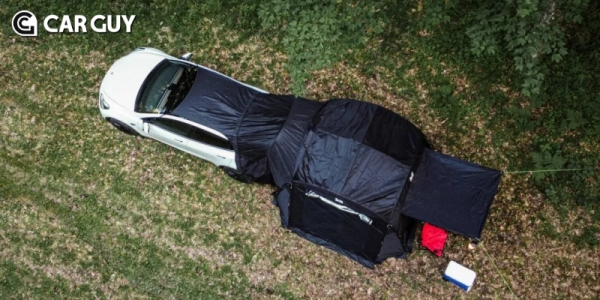 내연기관과 달리 전기차만의 장점인 배기가스 제로라 차박을 해도 에어컨을 사용할 수 있다. 이 텐트는 모델 Y 캠프 모드를 통해 USB 포트와 저전압 에어컨으로 실내 온도를 유지하고 V2L을 이용해 가정용 전기 장치를 작동시킬 수 있다. 캠핑 중 차량을 사용하고 싶다면 차량과 연결된 부위쪽 지퍼를 올려 텐트를 분리한 뒤 밀봉할 수 있다.