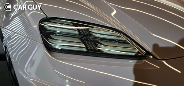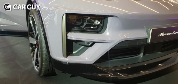 마칸 일렉트릭 전면은 2개의 헤드라이트 파트로 나눠져 있다. 헤드라이트처럼 보이는 부분은 사실상 헤드라이트가 아닌 4포인트 주간 주행등이다. 실질적인 하향등과 상향등은 매트릭스 LED 기술을 탑재한 하단 헤드라이트 모듈이다.