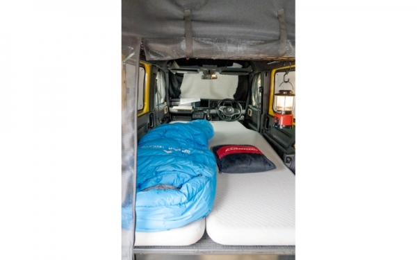 이외 나머지 절반은 잠을 위한 공간이다. 평상 시 사용하는 좌식 소파를 접어 침대 매트리스로 사용이 가능하다. 이처럼 차내 공간을 알차게 사용했다. 그는 "향후 바닥에 책상다리로 앉는 구조가 아닌 의자에 앉아서 작업할 수 있는 공간도 DIY로 만들어보고 싶다"고 말했다.
