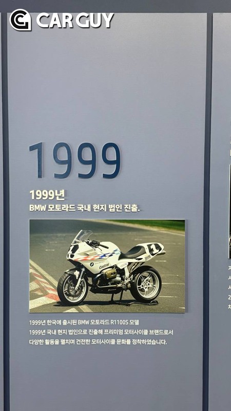 30주년 기념 전시 공간에는 BMW코리아 역사를 대표하는 차량이 전시됐다. 1990년대말 인기를 끈 고성능 드라이빙 머신 3시리즈, 수입차 대표 중형 세단 5시리즈, 그리고 럭셔리 리무진 시장을 연 7 시리즈가 전시돼 있다. 1999년 등장한 BMW 최초의 수입 모터사이클 R1100S도 만나 볼 수 있다.