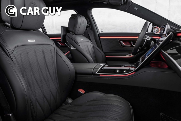 실내에서 눈에 띄는 요소는 센터 콘솔이다. 발광하는 오렌지 색 파이프는 고전압 케이블을 연상시키며, AMG 문장의 형태를 띈 디자인 요소는 고급스러움을 강조한다. 스티어링 휠은 AMG ONE 차량과 유사하게 직사각형에 가까운 형태로 양쪽에 수평 스트럿이 배치돼 모터 레이싱 감각을 살렸으며, 실내에 적용된 스포티한 체크무늬 또한 모터스포츠를 연상시킨다.