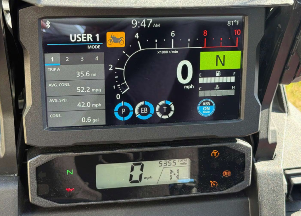 개인적으로는 다른 두 옵션인 실버와 브론즈보다 골드 디스플레이 모드를 선호한다. 골드 옵션은 가장 많은 정보를 제공하고 트립미터와 TC 및 윌리 제어를 즉시 변경하는 옵션도 표시해 준다.