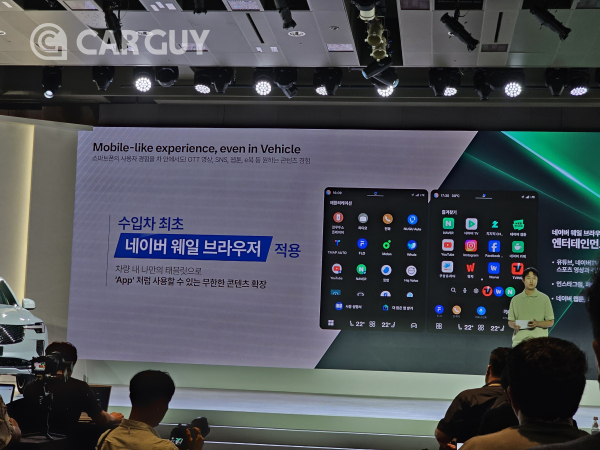 기존에도 고객 반응이 좋았던 티맵 오토는 그대로 유지하고 수입차 최초로 네이버의 차량용 웨일(Whale) 브라우저가 새롭게 탑재되는 것이 특징이다.