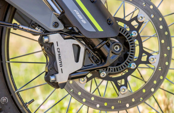 브레이크를 밟을 때 약간의 다이브가 있지만 과하지 않다. 아펙스를 벗어날 때 스로틀을 밟을 때 리어 스쿼트도 마찬가지다. 이 움직임은 자전거의 움직임을 전달하고 라이더가 섀시와 타이어의 움직임을 매 순간 이해하는 데 도움이 된다. 4피스톤 캘리퍼와 320mm 디스크 브레이크의 제동력은 중간 수준이다.