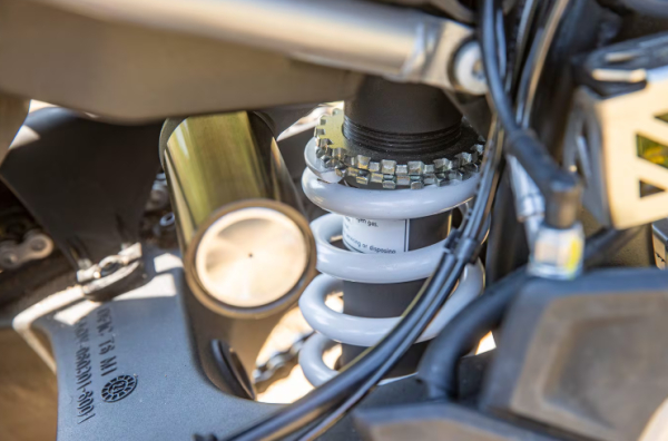 완전히 조절 가능한 KYB 포크와 리바운드 조절이 가능한 KYB 리어 쇼크에서 20cm가량 긴 서스펜션 트래블에도 불구하고, 주행은 균형 잡혀 차분하다. 턴인은 쉽지만 약간의 무게감이 있어 커브를 빠르게 통과할 때 자신감을 올려 준다.