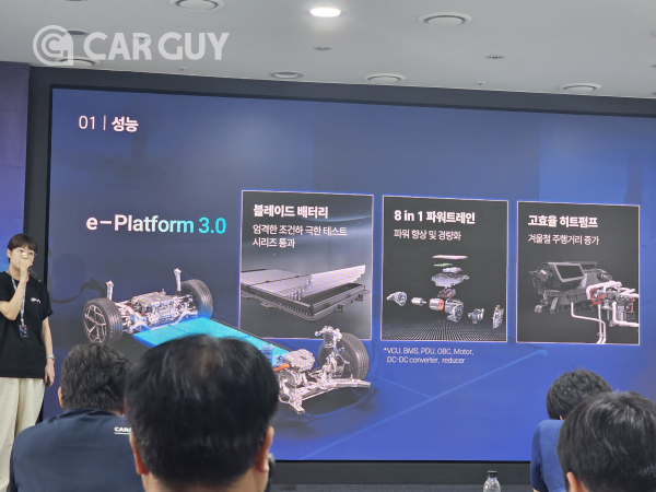 이로 인해 바디 강성이 크게 좋아져 충돌 안정성이 향상됐다. 더불어 차체 크기 대비 더 많은 용량의 배터리 탑재가 가능해졌다. BYD가 자랑하는 82.56kWh 용량의 LFP 블레이드 배터리가 적용되었다.