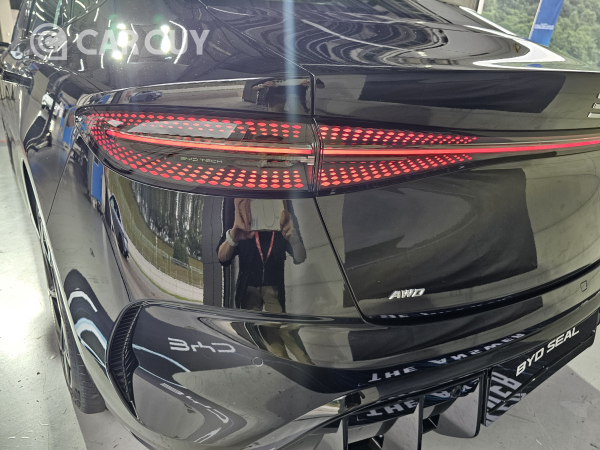 후면 테일램프 형상이 독창적이다. BYD는 물방울 모양을 형상화 한 것이라고 소개한다. 가운데를 가로지르는 커넥티드 라인 아래 순차 점등 방식의 턴시그널이 적용되었다.