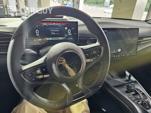 스티어링 휠의 디자인도 고래의 꼬리처럼 해양생물의 라인을 모티브로 했다. 재질이나 조작감은 좋았지만 곡선이 많이 사용된 디자인이 한 세대 전 차량의 디자인을 보는 것 같아 살짝 아쉬움을 주었다.