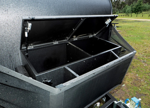 200L 담수 탱크와 100L 중수 탱크는 외딴 캠핑에서 충분한 용량을 제공한다. 카세트 비우기 문제를 해결하는 OGO 퇴비화 변기도 옵션으로 제공된다.