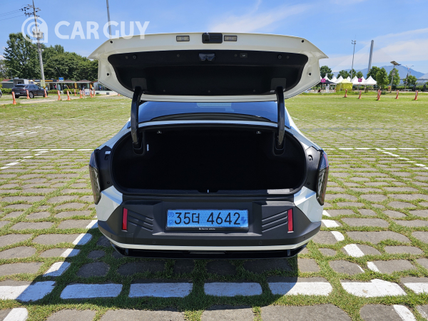 다만 자세히 뒷면을 보면 루프에 적용된 독특한 스포일러와 함께 미래에서 온듯한 이미지가 물씬 느껴졌다. 그만큼 기존 세단과 후면부 디자인 비율이 다르다는 것이다.