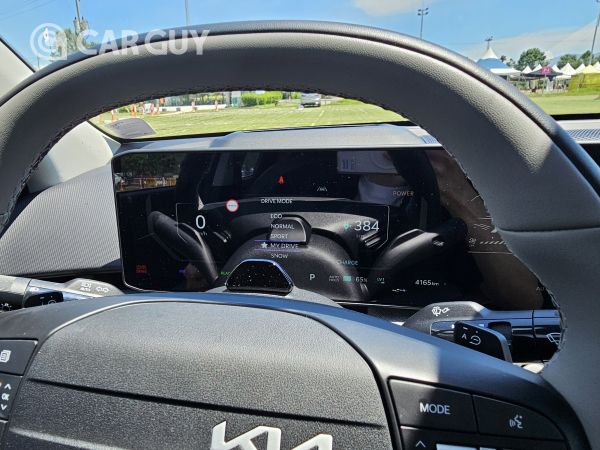 좀 더 과감하게 유리까지 열리는 리프트백을 적용했더라면 EV4의 경쟁력이 한층 살아났을 법 한데 아쉬운 대목이다. EV9과 EV3에 선 적용된 컬럼식 기어에 달린 스타트 버튼을 눌러 시동을 걸고 시승에 나섰다.