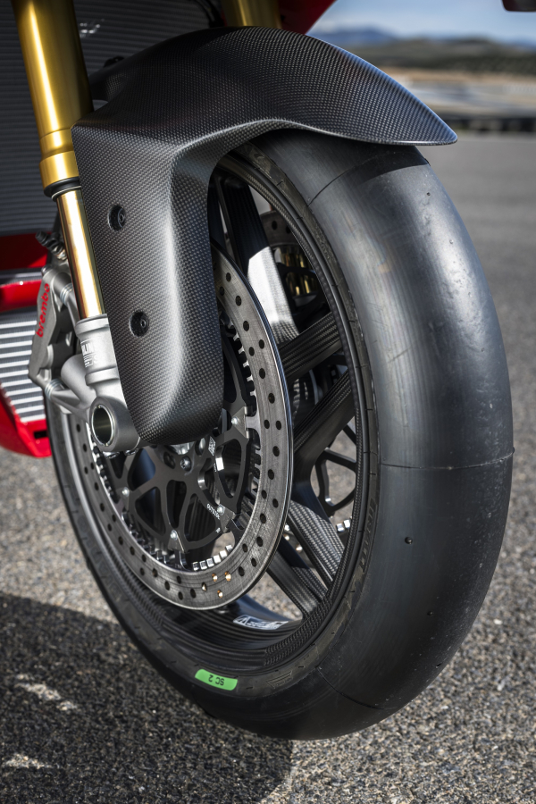 트랙 주행 포지션에 맞춘 조절식 리어셋과 스포츠 클립온 핸들 바도 제공된다. 두카티 코르세와 리조마가 공동 개발했으며, 위치 조절 폭이 넓고 풋 패그와 레버류는 충격 시 파손 위험을 줄이도록 설계되었다. 조절식 올린즈 스티어링 댐퍼도 출시된다.