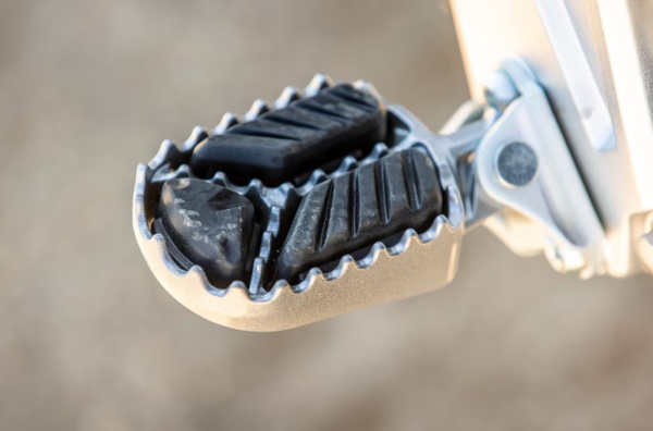 테네레 700을 탁월한 오프로드 모델로 자리매김한 것은 비밀이 아니다. 2025년의 많은 변경 사항은 오프로드 성능을 개선하는 데 목적이 있다. 대형 오토바이를 오프로드에서 제어하는 능력에 가장 중요한 요소 중 하나는 인체공학이다. 새로운 대형 풋페그는 분리형 고무 인서트가 있어 안전하고 그립력이 좋은 플랫폼으로 더 많은 제어력을 제공한다.