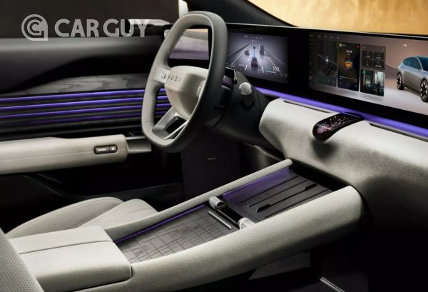 대시보드 전체를 덮는 59인치 화면, 디지털 윙 미러, 부드러운 가죽과 알칸타라 소재, 그리고 무선 충전기가 포함되어 있다.