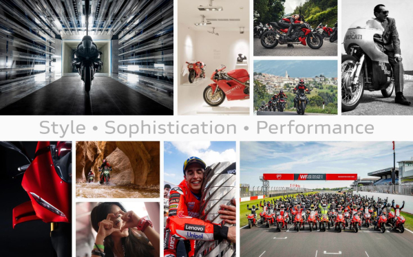 로고를 완성하는 슬로건은 ‘A Century Made of Seconds’로 ‘모든 순간들이 모여 만든 100년’을 말한다. 이는 두카티의 레이싱 DNA에 대한 헌정의 의미도 담고 있으며, 두카티를 더욱 특별하게 만드는 힘을 기리는 의미도 있다.