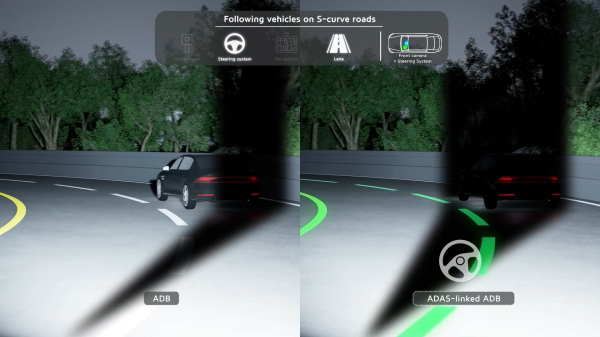 ADB(Adaptive Driving Beam)는 평소 상향등 상태를 유지하다가 차량의 카메라 센서를 통해 전방 차량을 인식하고, 해당 영역만 빛을 차단해 눈부심을 방지하는 지능형 헤드램프 기술이다. 이에 더해 현대모비스는 카메라 수집 정보를 확장하고 차량 내 레이더, 내비게이션, 조향 센서 등을 복합 활용해 뒤에서 추월하거나, 빠르게 커브길을 선회하는 등 급격한 움직임 상황에서도 관련 기능을 가능케 했다. 세계 최초의 첨단 ADB 예측제어 솔루션으로 평가된다. 종합 부품사로서 램프 기술을 포함해 다양한 센서와 내비게이션까지 핵심 기술을 모두 확보하고 있고, 이를 총체적으로 접목할 수 있었기에 구현 가능했다.